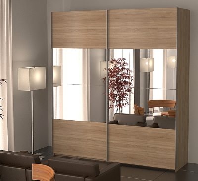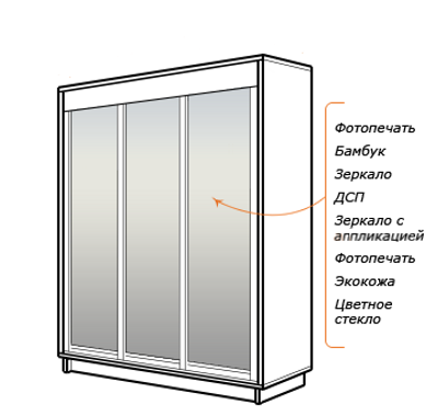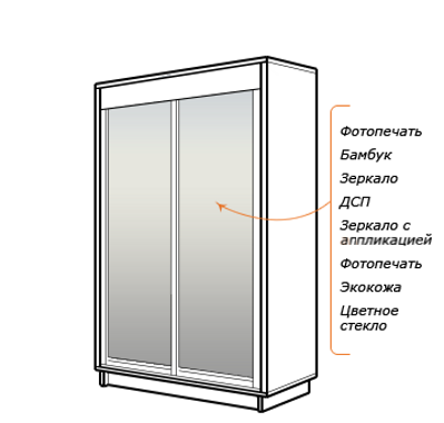 Зеркальные фасады не только повышают функциональность шкафа-купе, но и визуально увеличивают пространство помещения, делая его светлее и просторнее. Все зеркала в наших шкафах оклеены противоосколочной пленкой, которая не позволяет им осыпаться даже при сильном ударе. В зависимости от своего интерьера Вы можете выбрать простое зеркало, зеркало с бронзовым оттенком или зеркало с аппликацией.