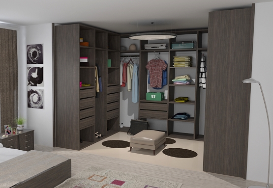 Гардеробная комната использует все полезное пространство и создает функциональную зону хранения, освобождая другие комнаты от лишней мебели. Гардеробная изготавливается под заказ практически во всех размерах. При невозможности установки целой гардеробной комнаты, возможно установить отдельную гардеробную стенку. По желанию гардеробную можно скрыть от лишних глаз раздвижной системой, подходящей по дизайну.