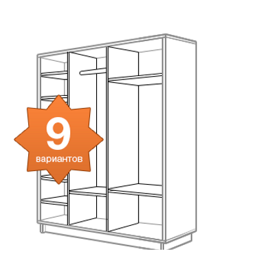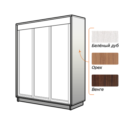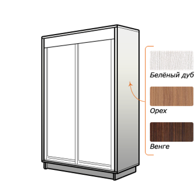 Самая экономичная линейка среди шкафов «Е1». Подойдет тем, кто ищет вместительный шкаф-купе без излишеств. Демократичная цена достигается благодаря стандартным параметрам шкафа: 1 вариант наполнения, 5 цветов корпуса: Белый снег, Венге, Дуб молочный, Ясень Шимо светлый, Ясень Шимо темный.