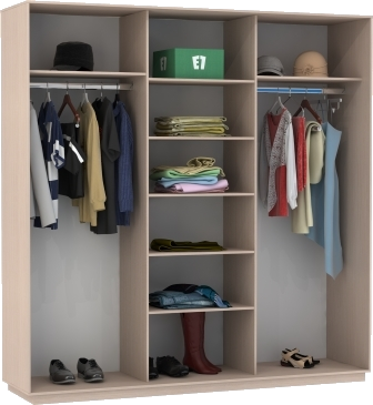 Стандартное наполнение шкафа-купе – полки, овальная или евроштанга для одежды. В большинстве случаев этого достаточно, чтобы хранить вещи.