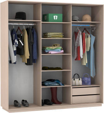 Чтобы сделать шкаф более вместительным и функциональным, его можно укомплектовать дополнительными полками, модулями с ящиками, кофрами или выдвижными корзинами. Эти аксессуары помогут Вам грамотно зонировать пространство внутри шкафа.